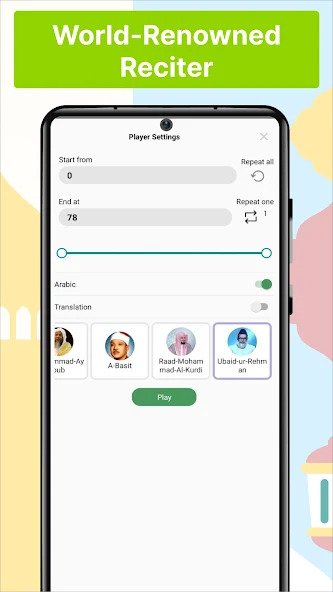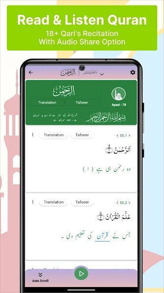 – Listen to Holy Quran’s recitation from at least 12 world-renowned reciters.