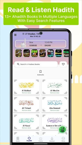 – Bookmark Ahadith to record your reading position or important Ahadith