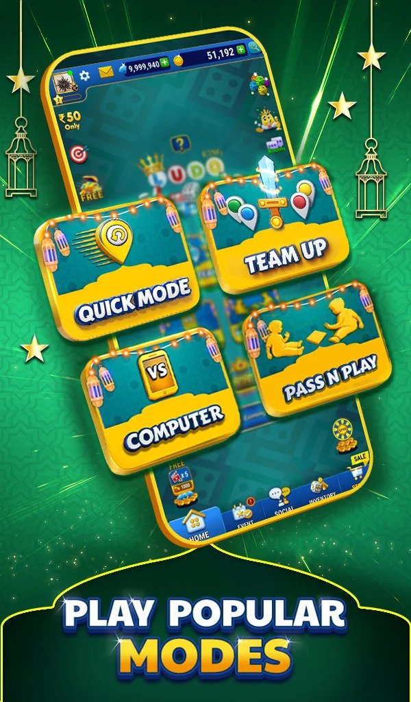 Ludo King is the modern version of the royal game of Pachisi. A Ludo game, which was played between Indian kings and queens in ancient times. Roll the Ludo dice and move your tokens to reach the center of the Ludo board. Beat other players, become the Ludo King.